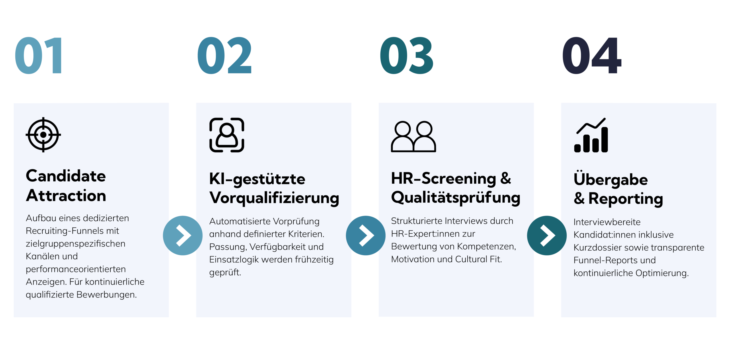 Wir kombinieren Technologie, Funnel-Logik und HR-Expertise: Für messbare Recruiting-Performance ohne interne Mehrbelastung.